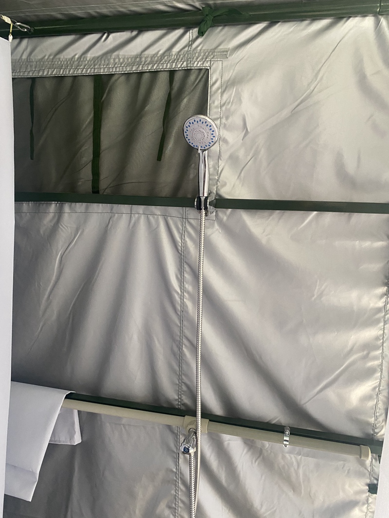 Size: 8 * 3 * 2 * 2.9m/6 * 3 * 2 * 2.9mOuter tent fabric: 600D military green Oxford cloth Structure: Frame structureInner curtain fabric: 150D white Oxford cloth Accessories: shower nozzle * 12/8, hammer Ground stakes and wind ropes