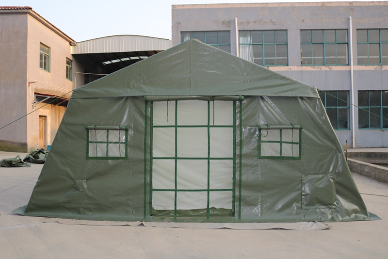 Size: 10 * 5 * 2 * 2.8mFabric: 600g military green PVC Structure: Frame structureInner lining fabric: 210D white Oxford cloth Weight: 260kgFloor cloth: 600g military green PVCAccessories: hammer, wind rope, ground pile